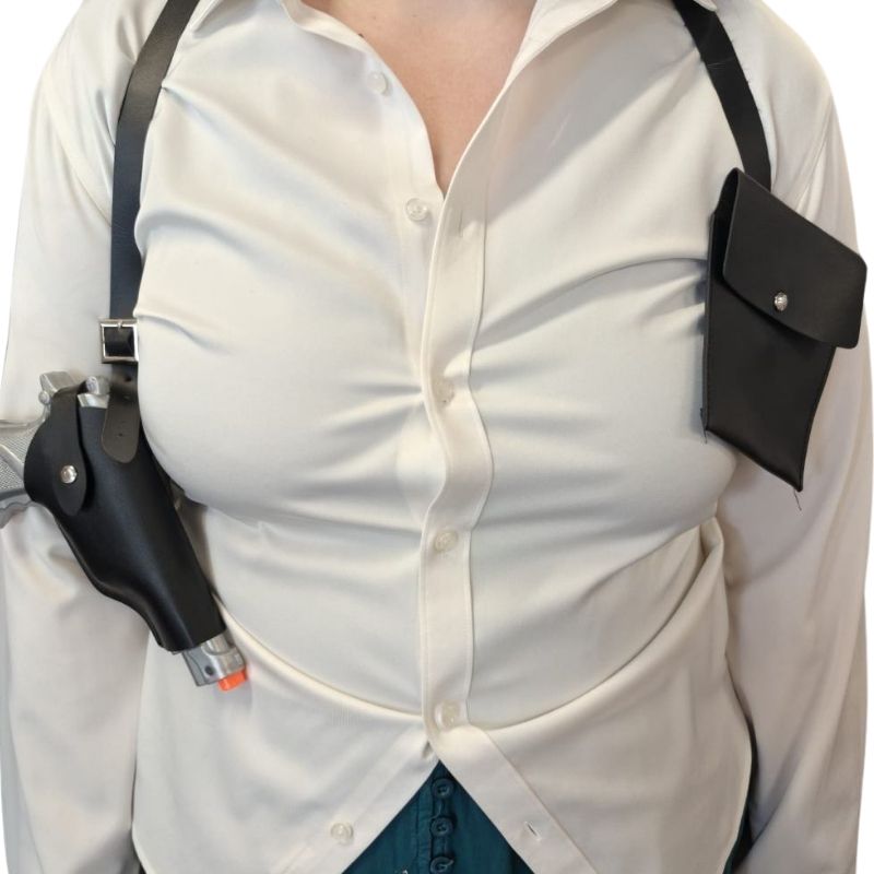 Create an authentic law-enforcement or action-themed costume with this Black Shoulder Holster & Pouch Set – the perfect accessory for police, detective, FBI-style or armed-forces dress-ups.