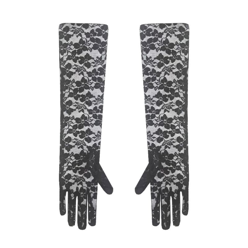 Get ready to channel your inner 1920's glamour with these Black Lacy Long Gloves! Perfect for a fun night out or a Halloween costume, these gloves will add a touch of elegance and playfulness to any outfit.