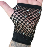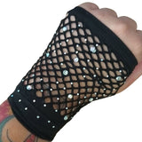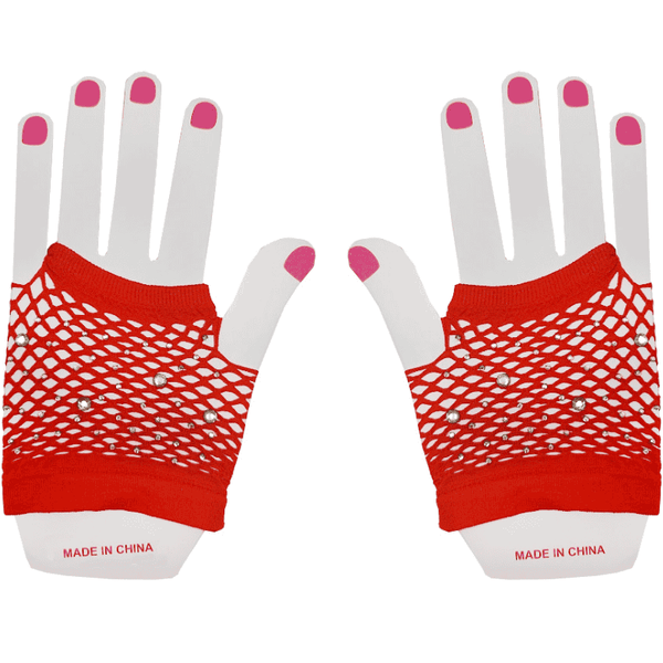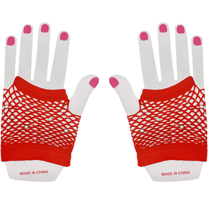 Get ready to dazzle with our Fishnet Gloves w/Crystals! These glamorous gloves are the perfect addition to any costume, whether it's for an 80's party, Halloween, or just a fun night out. Available in red or black, channel your inner Cindi Lauper and shine at any festival or event.