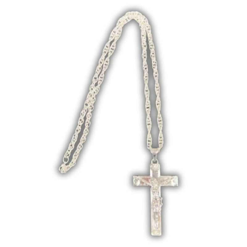 • Oversized silver cross pendant – 7cm x 4.5cm