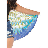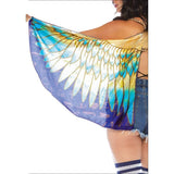 Take your festival outfit to soaring new heights of otherworldly beauty with the Leg Avenue Egyptian Goddess Festival Wings. The goddess-worthy wings feature a vibrant teal feather pattern and blue hieroglyphic details on soft flowing fabric. For comfort and ease of wear, these wings are complete with stretchy elastic back straps and wrist straps.