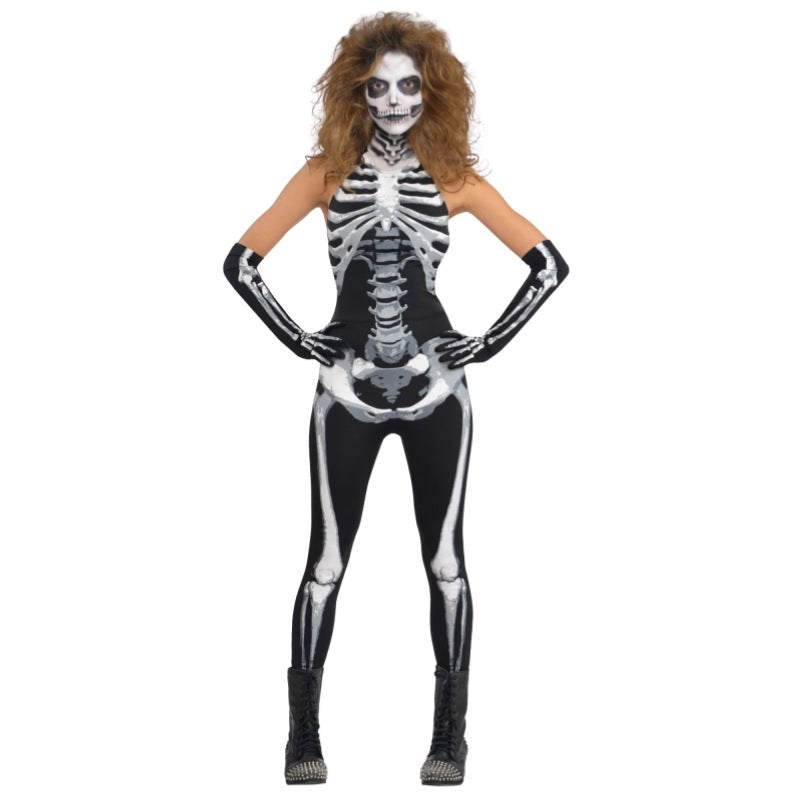 Unearth your sultry side with this figure-hugging Bone-a-fied Babe Skeleton Women's Costume! This naughty but nice ensemble features a bone-print design, so you can be the hottest skeleton in the graveyard! Boo-ya!