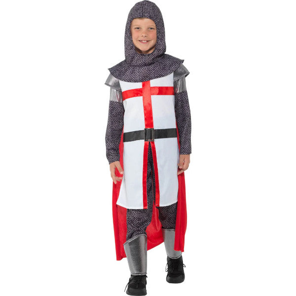 Dress up for the Medieval Festival in this Lancelot Costume featuring the St Georges cross. You will be ready for battle wearing this costume which features chain mail look fabric. Check out our range of shields and weapons to complete.