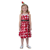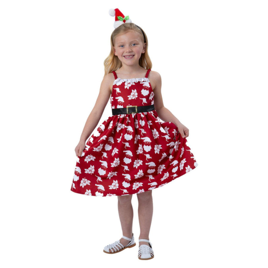 Featuring a red and white Santa-print dress and a headband hat, it is the cutest little dress and perfect for a family BBQ.