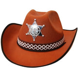 Why not become a bona fide cowpoke and ride off into the sunset? This Cowboy Hat comes with the complete package—brown feltex texture, a sheriff badge and brown band. Spice up your look and grab this hat today!