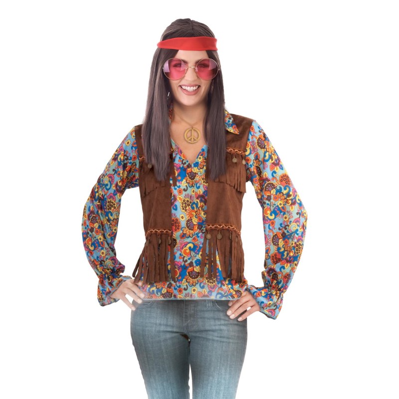- Brown fringed vest with attached floral shirt