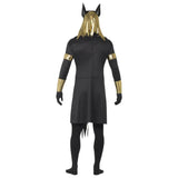 Unleash the god of fun with Anubis the Jackal Adult Costume! Stand out in black and gold tunic, collar, arm cuffs, and armbands, along with a horse-like mask. Perfect for Egyptian-themed events or Halloween. (May trigger a few hieroglyphic laughs!)