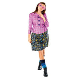- Digitally printed satin skirt with the Luna Lovegood pattern and gathered waist