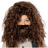 - Long, curly brown wig and beard set made from polypropylene hair strands