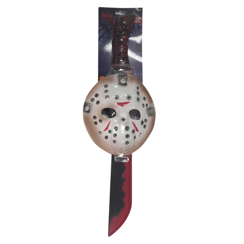 Complete your Friday the 13th look with this Jason Adult Mask & Machete Set from Rubies. Featuring the iconic hockey mask and blood-spattered machete, this officially licensed horror accessory kit is the perfect finishing touch for Halloween, slasher cosplay, or scary movie nights. Add it to your Jason costume and become the ultimate horror villain.