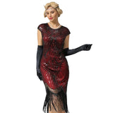 Step back in time to the roaring 20s with our 1920s Fringe Flapper Dress in a vibrant red hue. Embody the glamour and extravagance of the era with delicate art deco beading and a flirty capped sleeve. Perfect for themed events, this dress will have you turning heads. Rent it now!