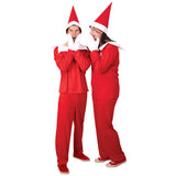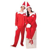 - Red top with long sleeves and attached white yoke/collar. Top features the Elf On The Shelf logo printed on left chest