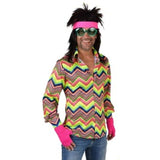 Step back in time to the neon-lit decade of the 80s with our eye-catching signal shirt! This vibrant piece features a bold zigzag design in a range of fluorescent colors, perfect for making a statement.