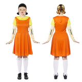 Dress as the iconic Doll from the 'Red Light, Green Light' game with this Squid Game Doll Deluxe Costume.