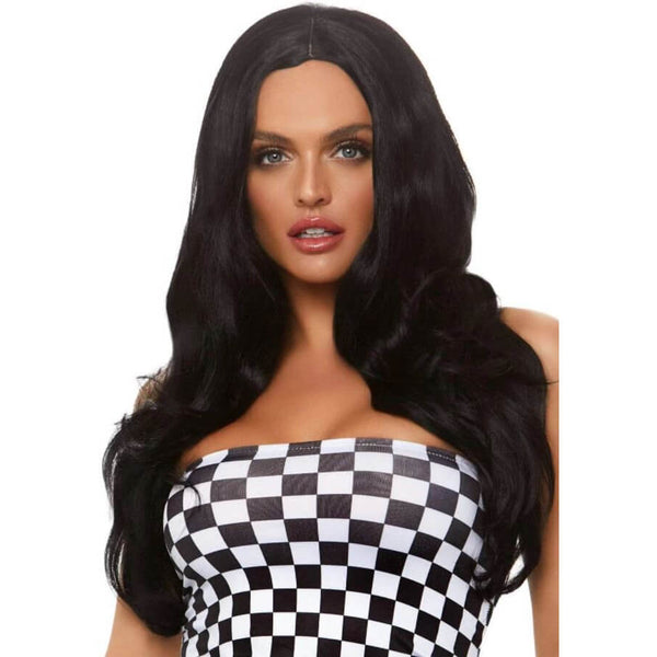 27" Long Wavy Centre Part Black Costume Wig - Leg Avenue