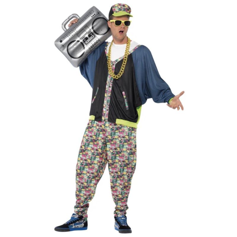 Get ready to bust a move with our 80's Hip Hop Costume! This loose-fitting jacket and pants combo will have you dancing like it's 1980 all over again. Perfect for Halloween parties and 80's-themed events, this costume is sure to be a hit. Check out our range of necklaces and glasses to complete this costume.