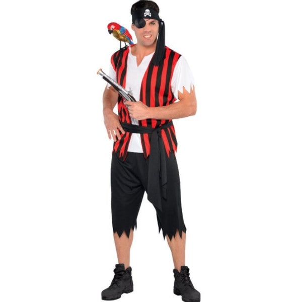 Ahoy, matey! Command the high seas in this classic Men's Pirate Costume. With a striped vest, jagged-hem pants, and a headscarf, you'll be the most stylish swashbuckler around. (Better start practicing those pirate puns!)
