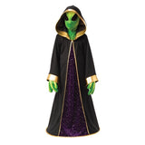 - Full length hooded robe in polyester fabric with gold details at hood, collar and centre panel plus glittery stars in purple panel from chest to ground