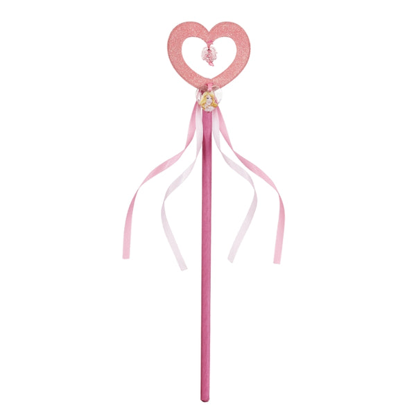 - Sleeping Beauty plastic wand with glittery love heart design at the top and laser cut plastic flower