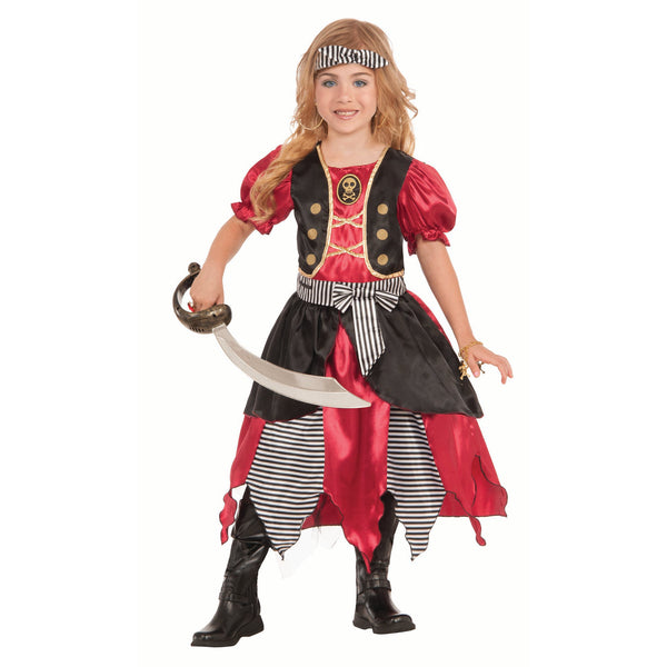 This costume has contrasting fabrics in the skirt, tulle underskirt, black peplin and the vest is stitched onto the bodice. Completed with stripe headband.