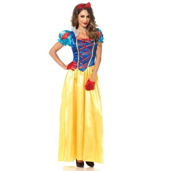 Be the fairest of them all in the 2 PC Classic Snow White women's costume by Leg Avenue. This cute Halloween costume includes the iconic long dress with lace up accent and matching bow headband. Iconic character design and fairy-tale details make this a must have for any dwarf sleepover. Snow White costume is perfect for a Halloween costume, themed parties, Book Week or cosplay costume fun!