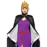 Beware of the queen and her poison apples! The 4 PC Deadly Dark Queen ladies costume by Leg Avenue features a sexy costume dress with flared organza sleeves, rope belt, cape, cowl head piece, and queen crown. This storybook character costume for women is perfect for Teachers Book Week, Halloween, parties, or as a cosplay costume!
