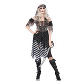 Ghost Pirate Lady costume by Leg Avenue includes dress, head wrap and sleeves.