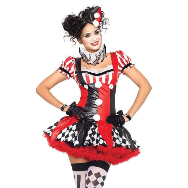 - FEATURES: Classic harlequin colours with a bit a flirty flair make this a must-have circus costume.