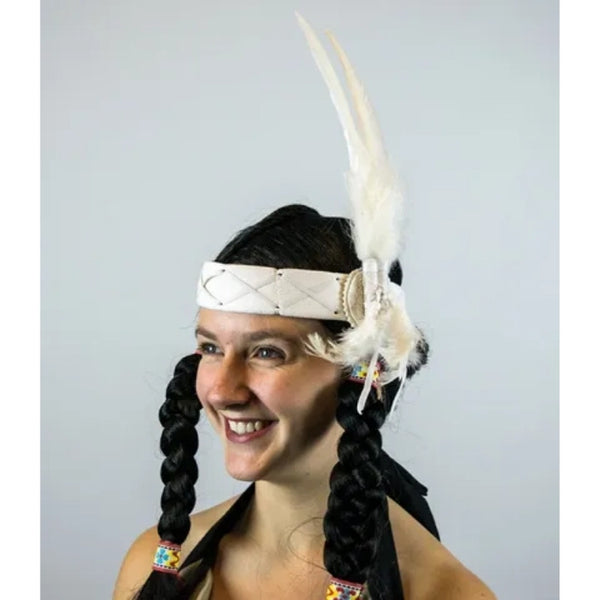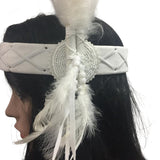 Unleash your wild spirit with our White Feather Headdress! This stunning headpiece for an American Indian squaw features intricate lacing, a bead decal, and two beautifully crafted feathers. Perfect for festivals, costumes, or everyday bold fashion. Conquer the day with this daring accessory!