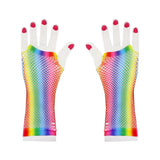 Long Rainbow Fishnet Gloves