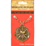 Complete your Pirate of the Caribbean costume with this gold Pirate medallion necklace featuring skull on compass.