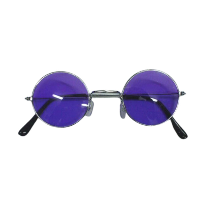 Add a burst of vintage charm to your next costume with these Retro Round Glasses featuring vibrant purple lenses and a slim silver metal frame. Their classic circular shape instantly evokes iconic 60s and 70s style, making them ideal for hippie outfits, flower power parties, great music-era tributes, and festival looks.