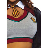 You'll have them all under your spell in this magical 3 PC Spellbinding School Girl women's costume by Leg Avenue. This sexy Halloween costume includes a crop top with badge accents, a high waist plaid school girl skirt, and the matching cape with the iconic tie. Complete your look with Leg Avenue knee highs. This iconic magic school costume for women is perfect for a Halloween costume, theme parties, or Hermione costume cosplay.