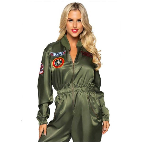 When you have the need, the need for speed just jump right into the Official Top Gun Zip Up Parachute Flight Suit costume for ladies. This 80's movie inspired costume features a nylon jumpsuit with 2 interchangeable name badges, sewn on patches and zipper front. No matter who your favorite is, the interchangeable name tags let you change between Maverick or Goose whenever you’d like. From trick-or-treating with the kids to a Halloween night bar crawl with the gang, this easy-to-wear costume will keep you cool and comfortable all night long.