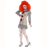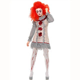 Step right up to the spooky circus with the Vintage Clown Lady Costume. Inspired by the eerie style of classic circus performers, this costume features a grey and red clown dress with matching neck frill and striking red pom-pom accents. A traditional clown hat completes the old-fashioned look, giving you a perfectly creepy vibe for Halloween or circus-themed parties.
