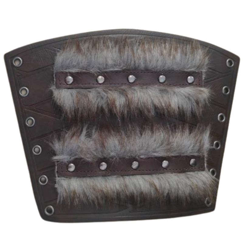 Intensify your warrior aesthetic with these Deluxe Wrist Bracers. Made from rich brown faux leather, these accessories feature soft faux fur trim, silver rivets, and metal eyelets for a rugged, battle-worn look. Adjustable with matching brown ties, this set adds realistic detail to any fantasy or historical outfit.